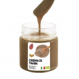 - Tahin tostata bio: i semi di sesamo biologici non decorticati vengono selezionati con cura, per poi procedere con una tostatura eseguita secondo precisi parametri. In seguito, si passa alla macinazione, che permette al seme di sesamo integrale tostato di liberare il suo sapore intenso, sposandosi alla perfezione con la consistenza cremosa del composto ottenuto.